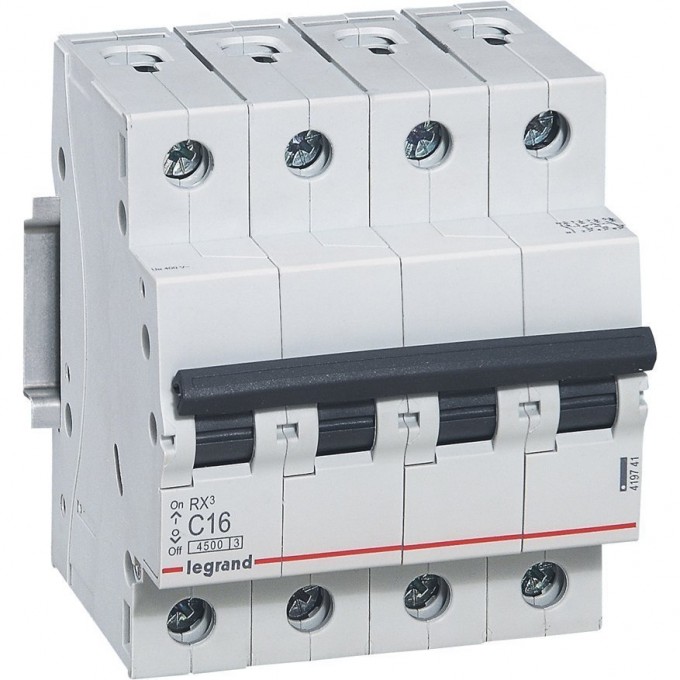 Четырехполюсный автоматический выключатель Legrand серии RX3 типа C. Номинальный ток - 25А. Отключающая способность - 4,5кА. Размер - 4 модуля DIN (70 мм). Автоматические выключатели этой серии производятся в Европе. У них увеличенная износостойкость (10000 электрических и 20000 механических операций). Группа Legrand гарантирует качество и соответствие заявленным характеристикам. Товары серии RX3 рекомендуются к применению в реконструируемых и вновь возводимых жилых домах, при ремонте. Допускаются к установке на различных объектах (жилые комплексы, небольшие офисы и торговые помещения).