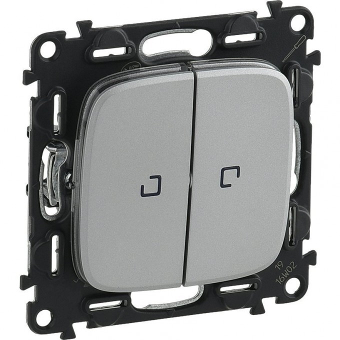 Переключатель LEGRAND Valena ALLURE двухклавишный 10АХ 250В с подсветкой с лицевой панелью алюминий 752909