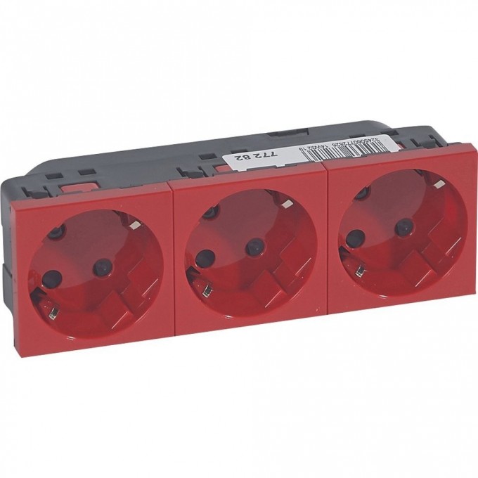 Розетка LEGRAND 3 x 2К+3 под углом 45° Программа Mosaic с механической блокировкой красный 077282